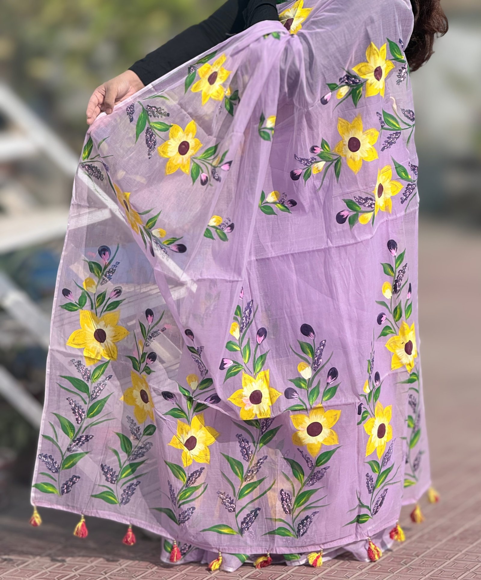 ল্যাভেন্ডার হ্যান্ড পেইন্টেড শাড়ি