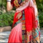 সাদা ও লাল কম্বিনেশন সিল্ক শাড়ি
